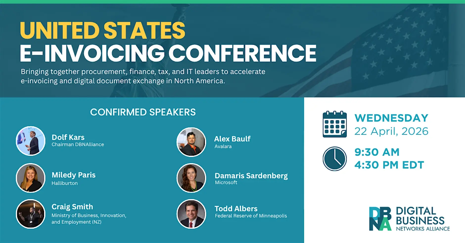 In addition to these technical topics, the conference will also cover how businesses can prepare for future compliance requirements, what a U.S. e-invoicing network could look like, and how global standards can be adapted to fit the U.S. market.